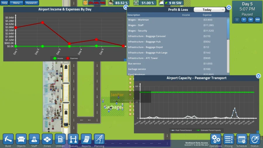 SimAirport — здесь ты становишься настоящим боссом воздушной гавани! Проектируй терминалы, выстраивай идеальные взлетно-посадочные полосы, чтобы твой аэропорт гремел на всю округу. Нанимай свою команду мечты — от улыбчивых кассиров до строгих охранников. Следи, чтобы очереди не превратились в змеиные гнёзда, а багаж не улетел на Мадагаскар. В игре можно строить все — от козырных VIP-залов до уютных кафе и магазинов. Чутко реагируй на капризы пассажиров: кто-то требует Wi-Fi, а кто-то мечтает о мягком диване. Каждое решение влияет: забыл про безопасность — жди сюрпризов, проморгал уборку — пожалей о репутации. Режим песочницы для тех, кто любит свободу, или карьера для любителей вызова — сам выбирай, с чего начинать. Здесь адреналин сочетается с менеджерской рутиной, а успех зависит только от тебя. Я попробовал — теперь не могу оторваться! Небо — не предел, если управляешь аэропортом с умом и юмором.