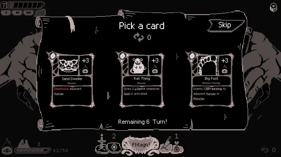 Fhtagn Simulator – это карточный рогалик с изюминкой, который затянет тебя в мир загадок и тайн. В этот раз ты не герой, а фанат странного культа, мечтающего разбудить спящих гигантов океанских глубин. Они древние, они голодные, и ты их самый верный адепт. Задача? Грандиозная – стереть с лица земли всё живое. Но не всё так просто: путь сложный, а препятствий хватает. Придётся изобретать, жертвовать, хитрить и копить силу для пробуждения своих любимцев-левиафанов. Мир будет крутиться, ужиматься и трещать по швам от твоих поступков. Иногда всё напоминает вечеринку в стиле «вызови апокалипсис» — только карты вместо коктейлей. Каждый шаг приближает тебя к моменту, когда старые боги вновь вздохнут полной грудью, а мир уже никуда не убежит. Испытай себя — вдруг пробудиться получится не только древним, но и твоей хитрости?